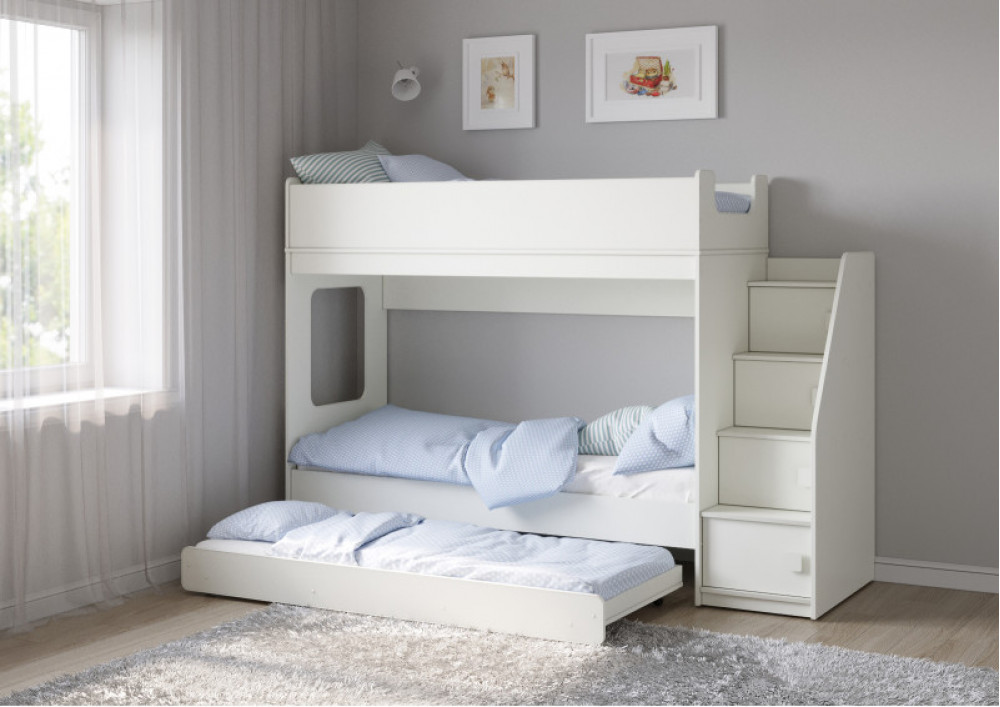 Двухъярусная кровать Легенда D602.3 с ящиком - уникальный комплект для троих детей!