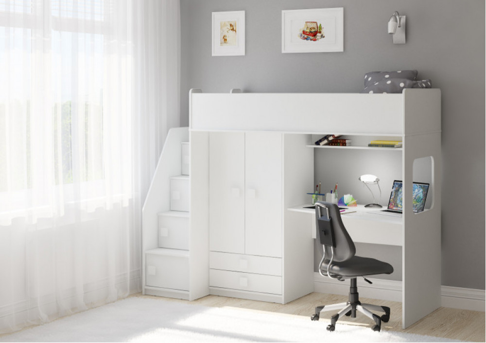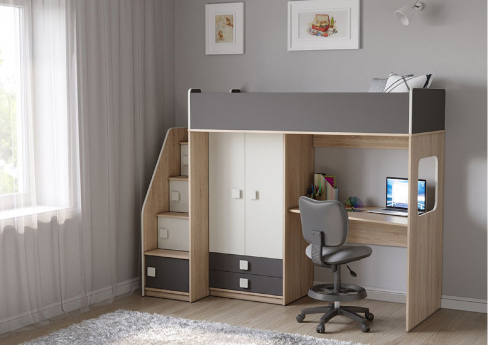 Учебная зона со столом под спальным местом открывает возможности для письменных работ,а также здесь удобно расположить ноутбук.
