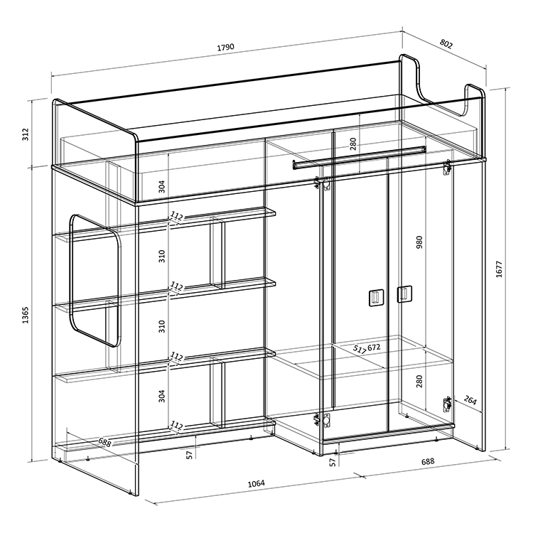 Высота кровати всего 1677 мм.