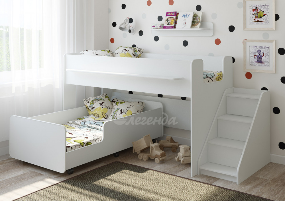 Детская выкатная белая кровать Легенда 23.4 – это удобно и практично.